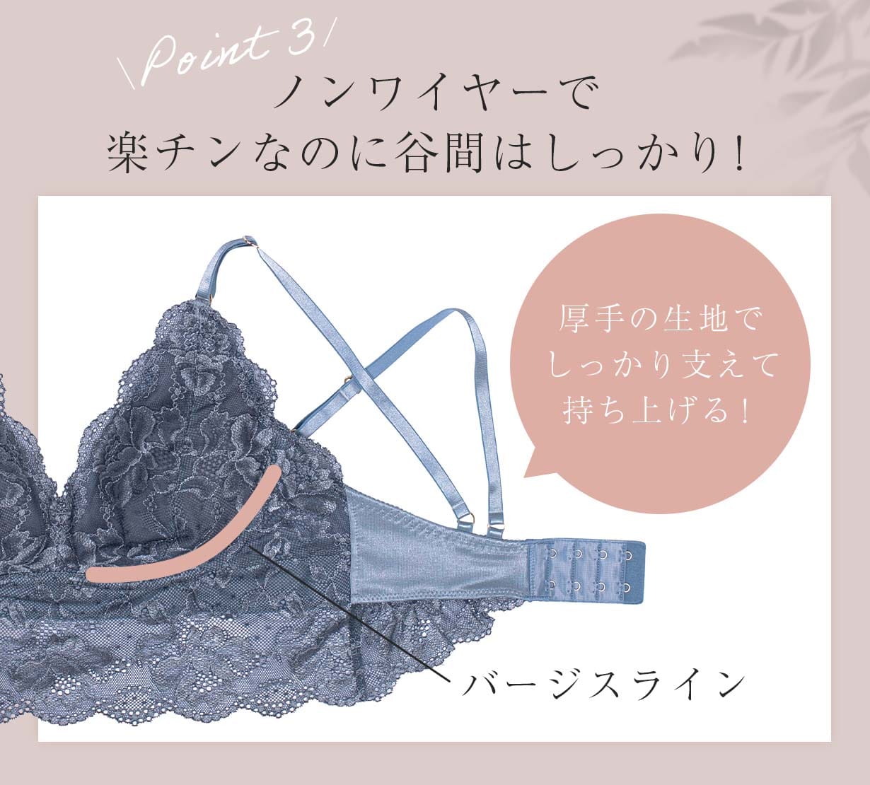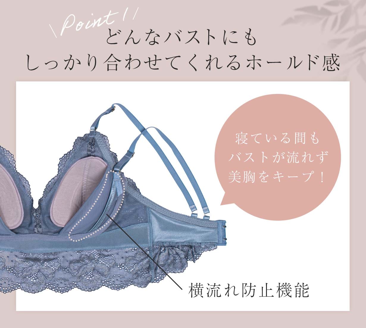 ナイトブラは通常のブラよりレースの量をさらに増やし、ホールド感がより高くなっています。