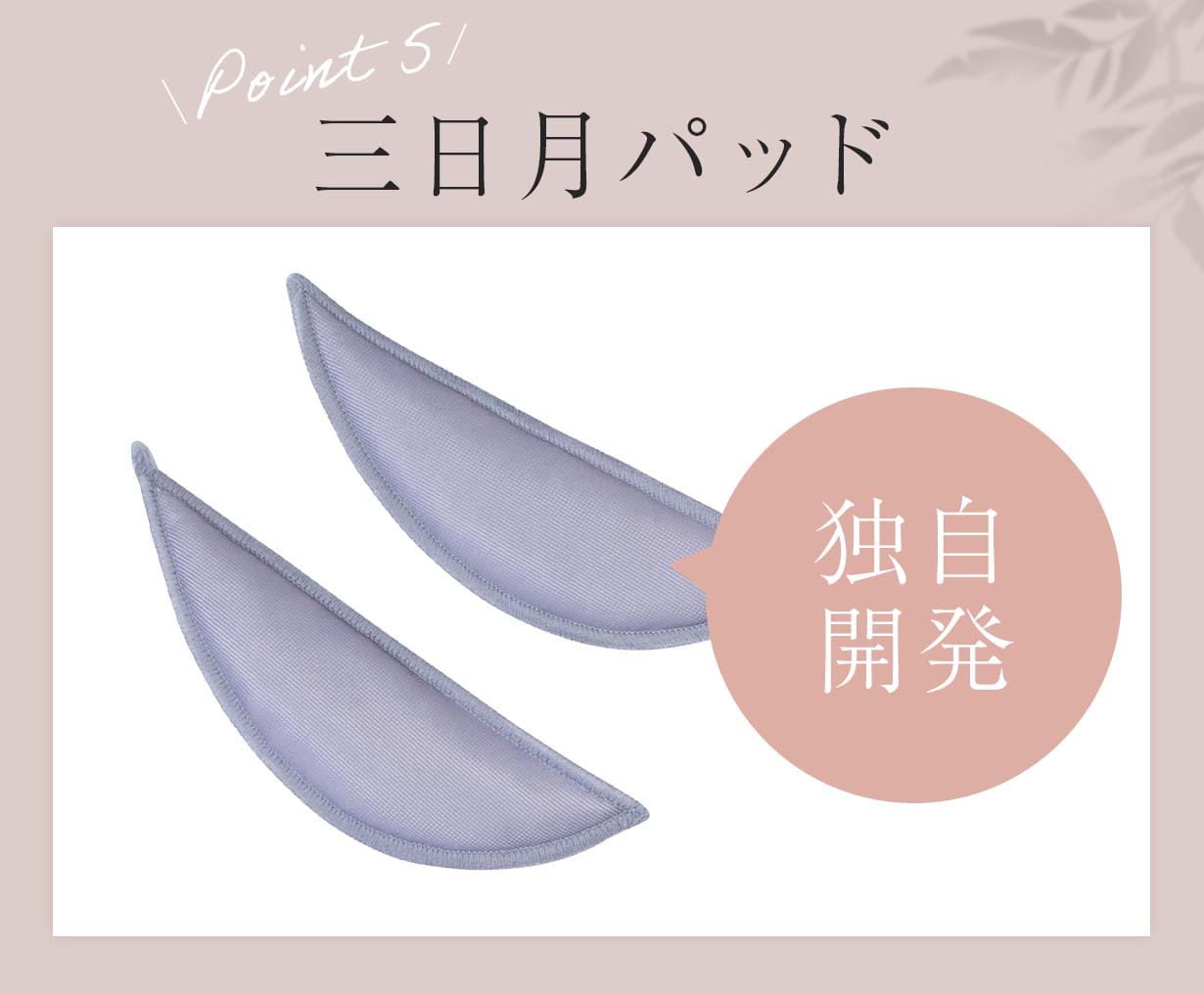 よりバストをきれいに引き上げ、谷間のボリュームが作れるようオリジナルの三日月型パッドを自社開発。