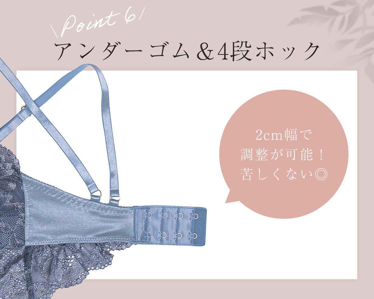 アンダーバストには、伸縮性が高くかゆみの出ないような肌なじみの良いゴムを使用。